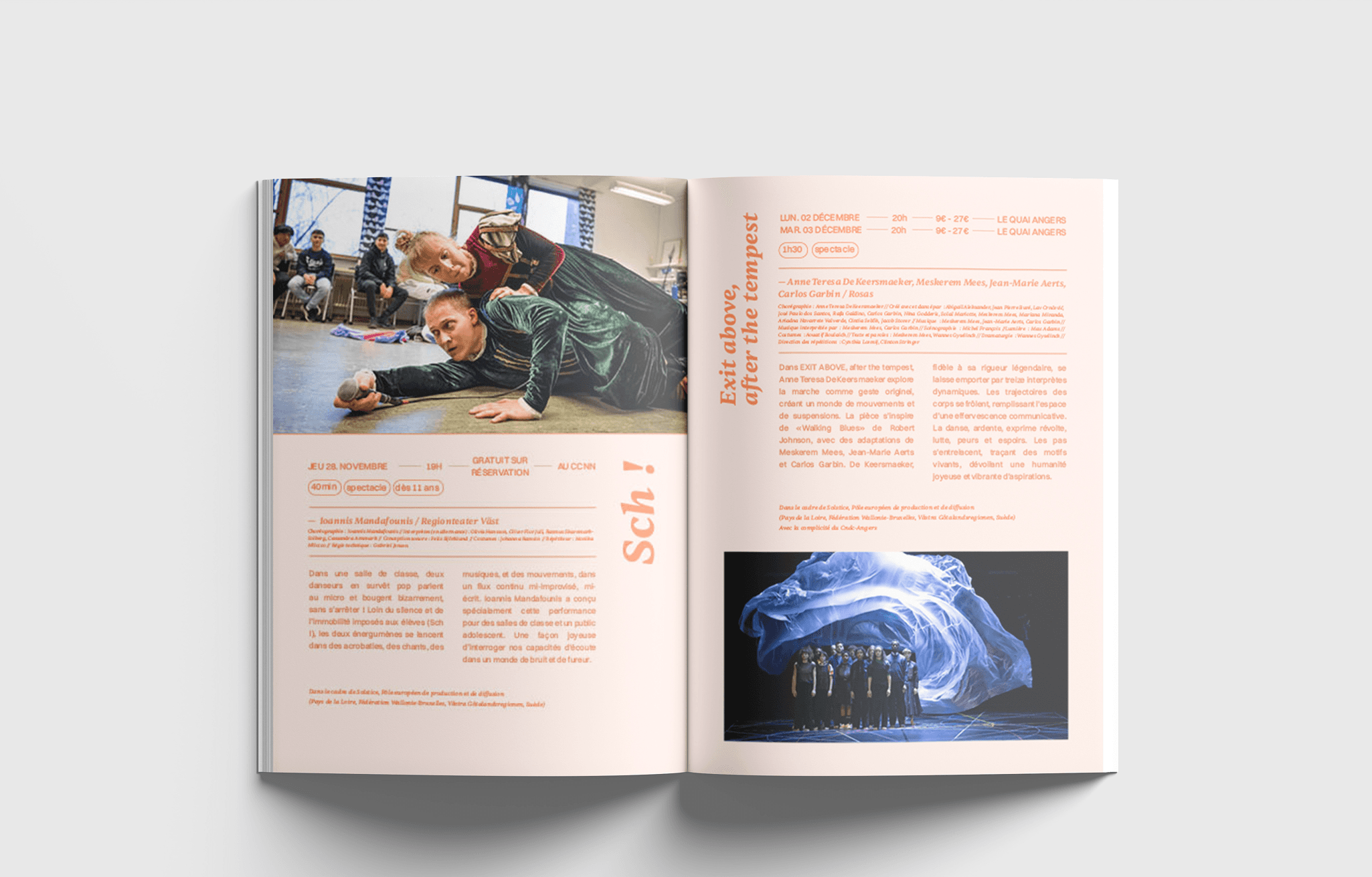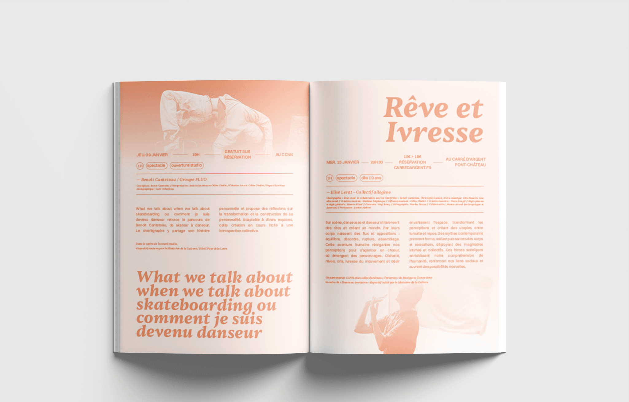 Pour ce projet réalisé au sein de l'ECV Nantes , nous avons été missionnés pour concevoir l’identité visuelle de la saison charnière du Centre Chorégraphique National de Nantes. Un moment symbolique qui marque la passation entre la chorégraphe Ambra Senatore, après 10 ans à la direction, et Salia Sanou.