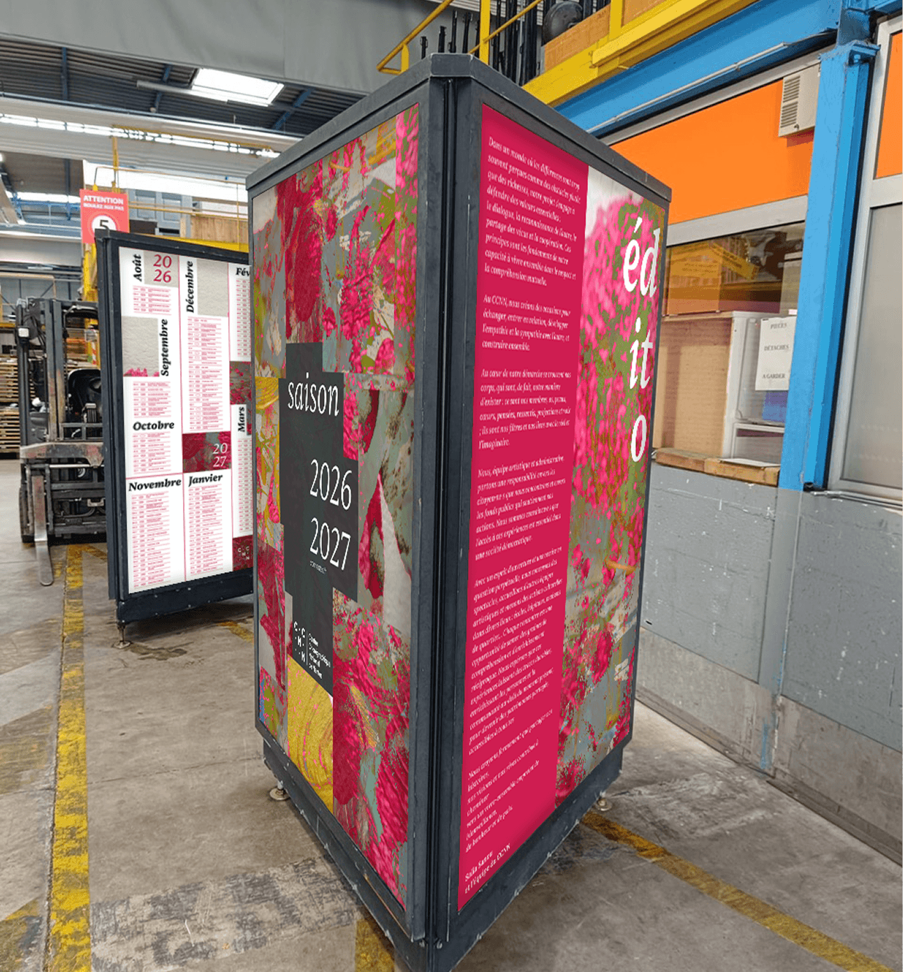 Un univers sensoriel : Une colorimétrie puissante et contrastée qui accompagne tous les supports de la saison, de l'affiche à l'agenda.
